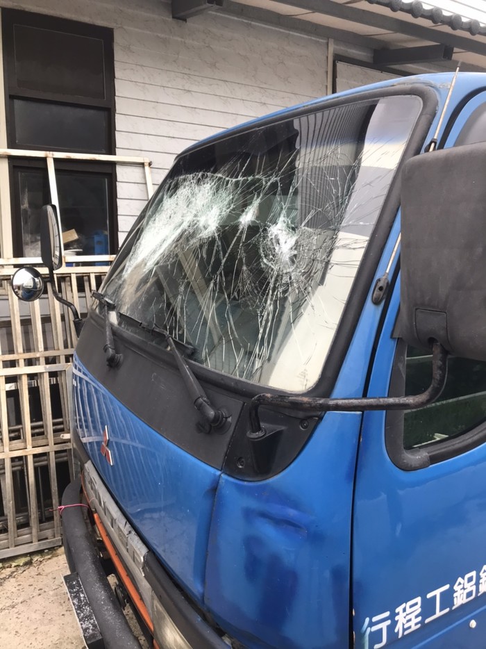 家中貨車的擋風玻璃被不明人士蓄意砸破,造成家中工作不便,已有報警及備案,希望肇事者可以自行出面承擔,否則一切依法追究責任 謝謝