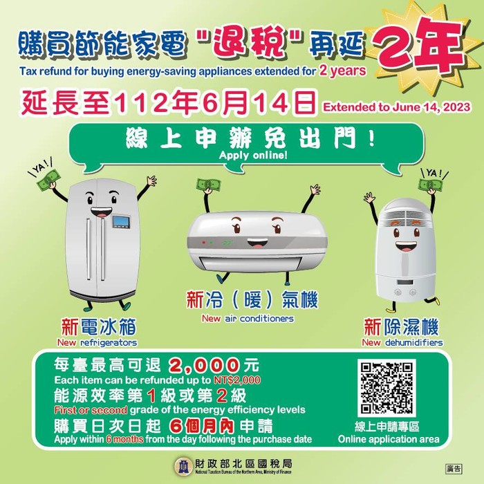 限購買經經濟部核定能源效率分級為第1級或第2級之新電冰箱、新冷(暖)氣機或新除濕機