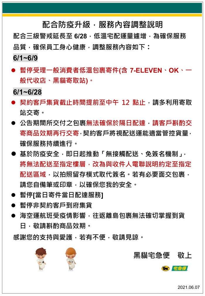黑貓宅急便公告