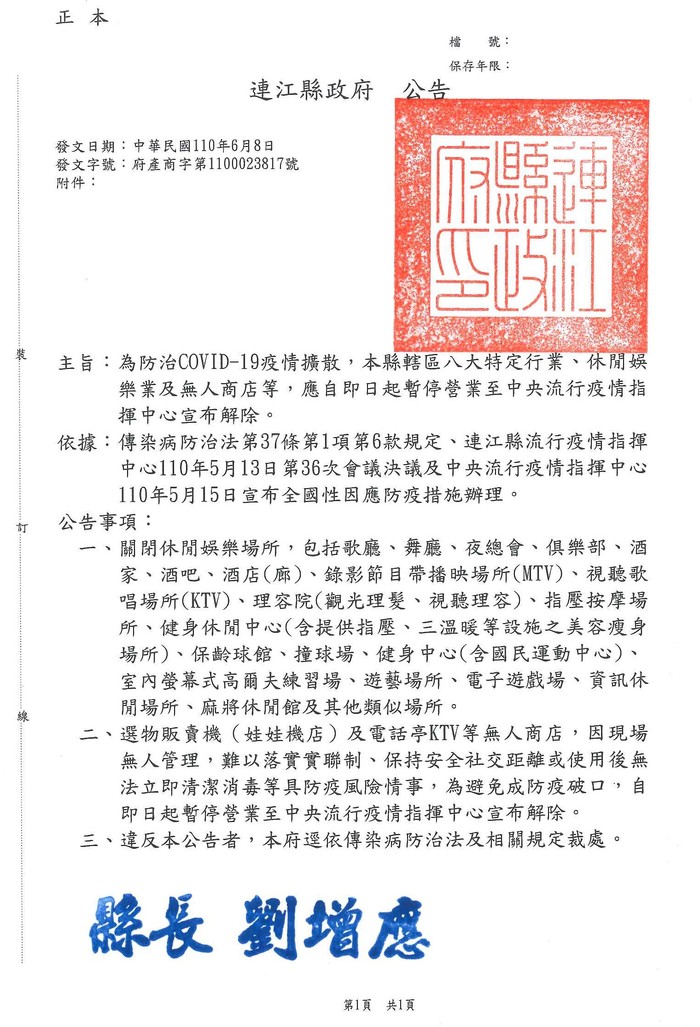 八大行業營業場所暫停營業至宣布解除