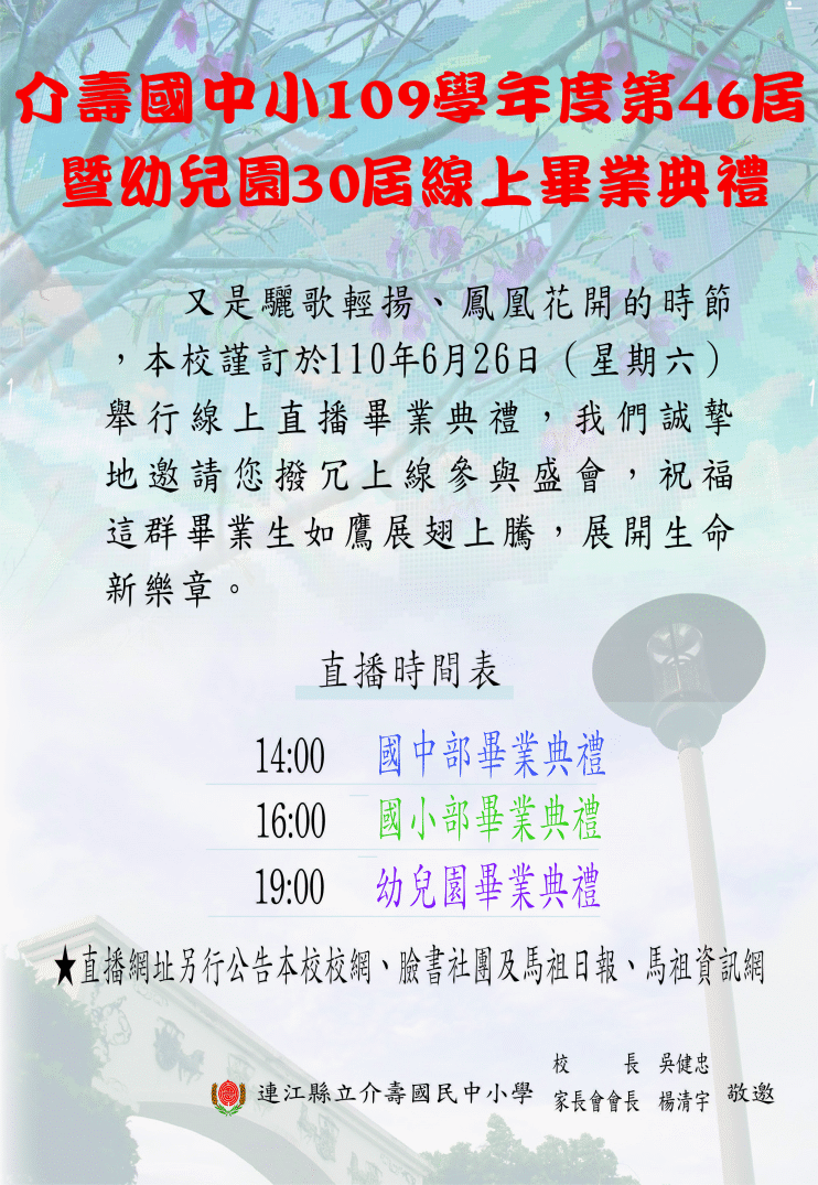 110.6.26(六)19:00介壽國民中小學(幼兒園)109學年度畢業典禮預告片