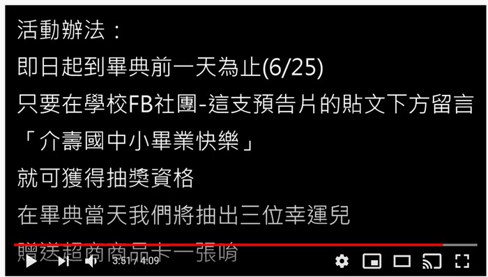 6/26(六)介壽國中小109學年度畢業典禮預告片(有抽獎) --閱讀人次 : 1055