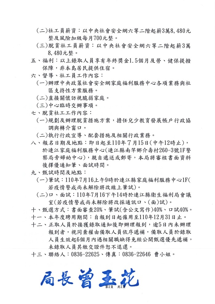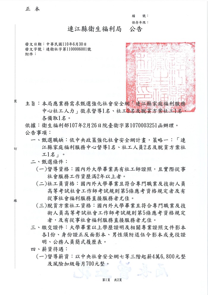 連江縣衛福局徵才公告