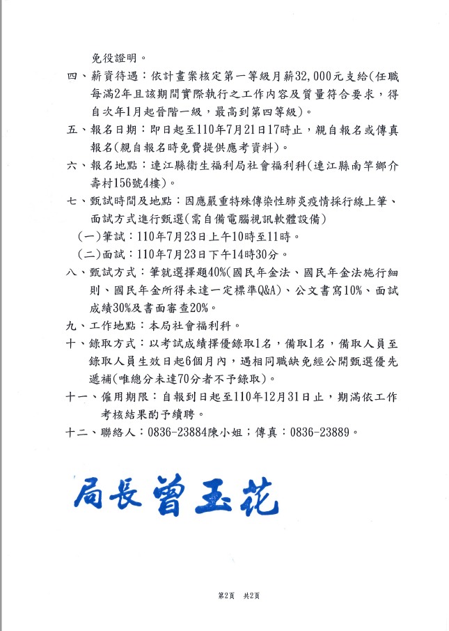 衛福局徵選國民年金督導員第4次公告