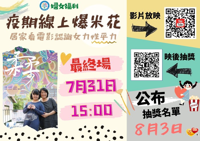 活動名稱:疫期線上爆米花 居家看電影認識女力認識性平力