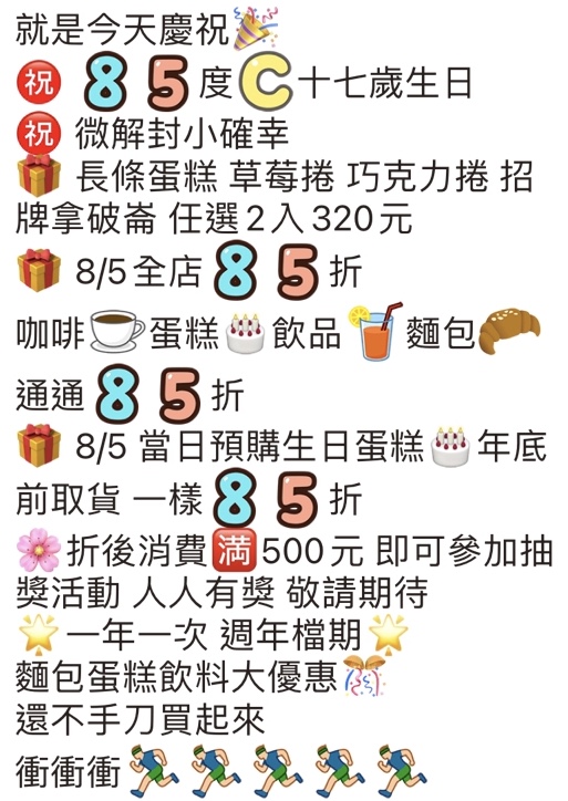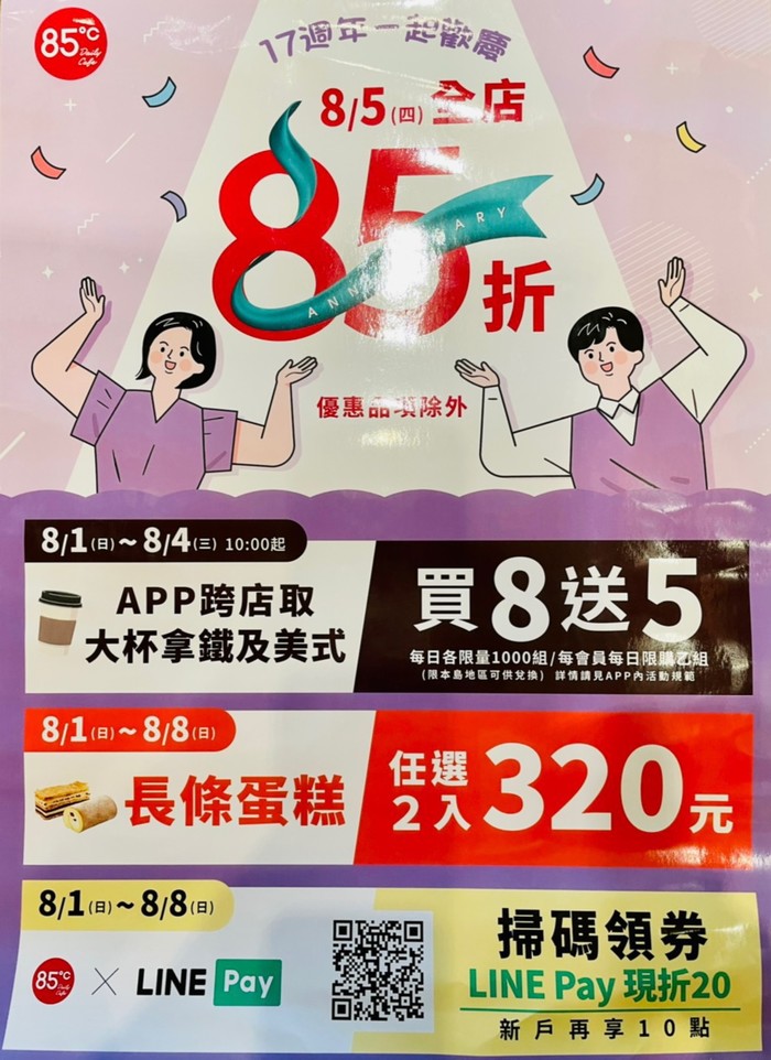 慶祝85度C十七歲生日 全店85折