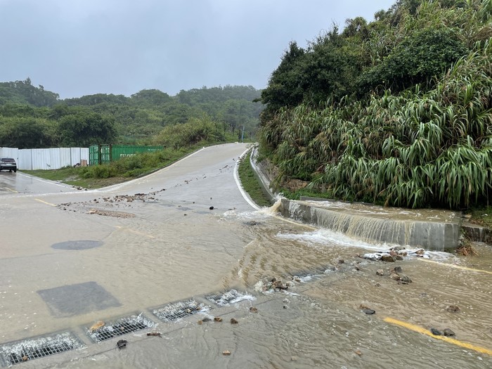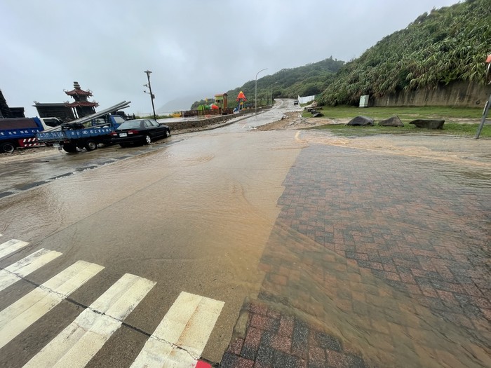 海濱大道珠螺村段(玄天上帝廟及遊樂場前)積水及土石坍方
