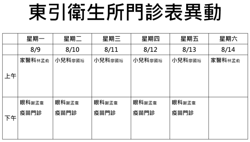 東引衛生所本週班表