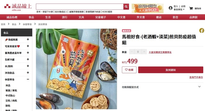 誠品線上(老酒蝦+淡菜)煎貝防疫超值組