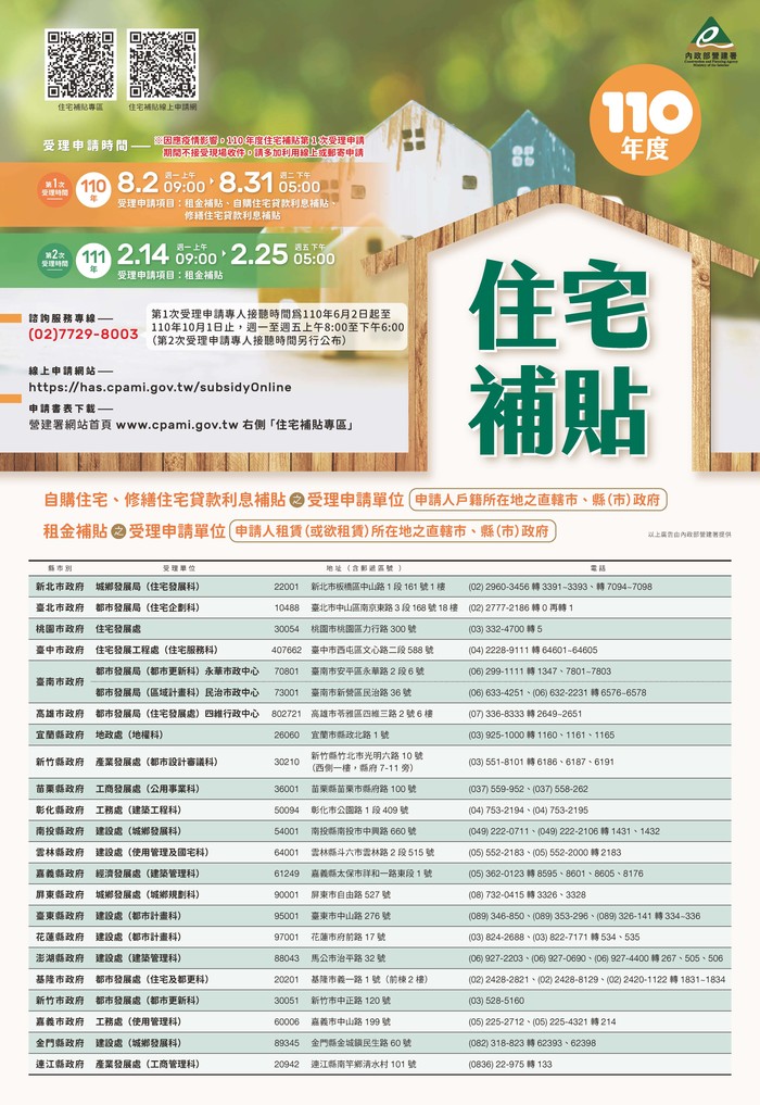 110年度整合住宅補貼[租金補貼]第一次公告受理