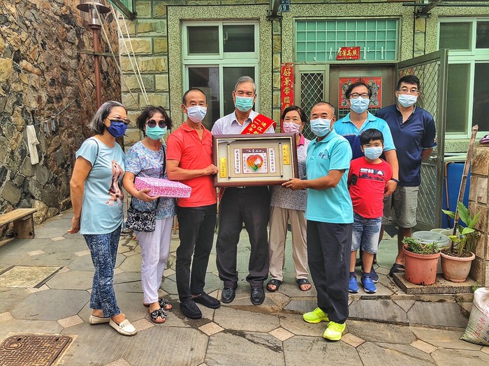 北竿鄉110年模範父親陳尚武先生,鄉長陳如嵐等人親臨府上頒贈匾額並祝賀父親節快樂。