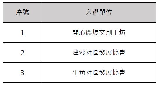 七彩樂齡農村產業徵選計畫 初選名單 --閱讀人次 : 713