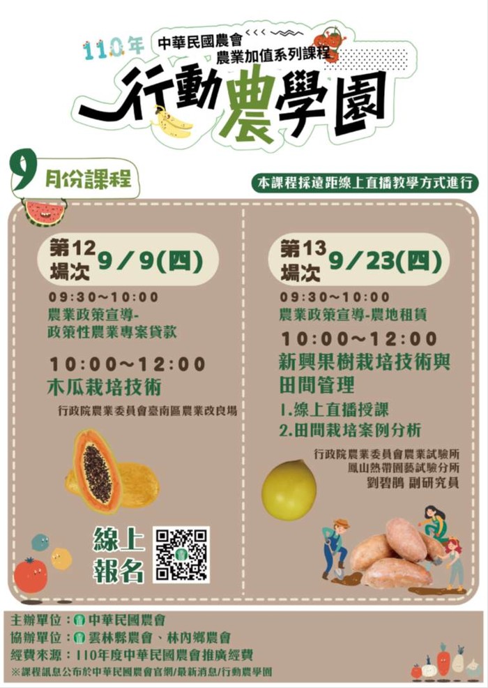 行動農學園110年9月份線上課程 --閱讀人次 : 698 一、課程名稱:中華民國農會【行動農學園】110年9月份線上課程