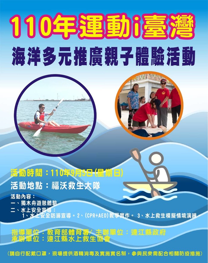 馬祖四面環海,且擁有廣大的海域面積。炎炎夏日暑假期間,從事水上活動之民眾將增多,為讓民眾可以體驗多元化的水上遊憩活動,並加強宣導水域安全的重要性。