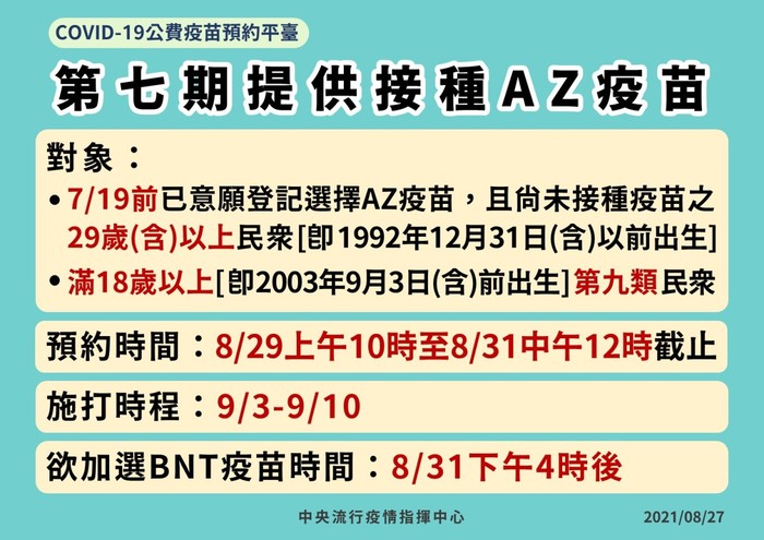 預約平台第7期提供AZ疫苗