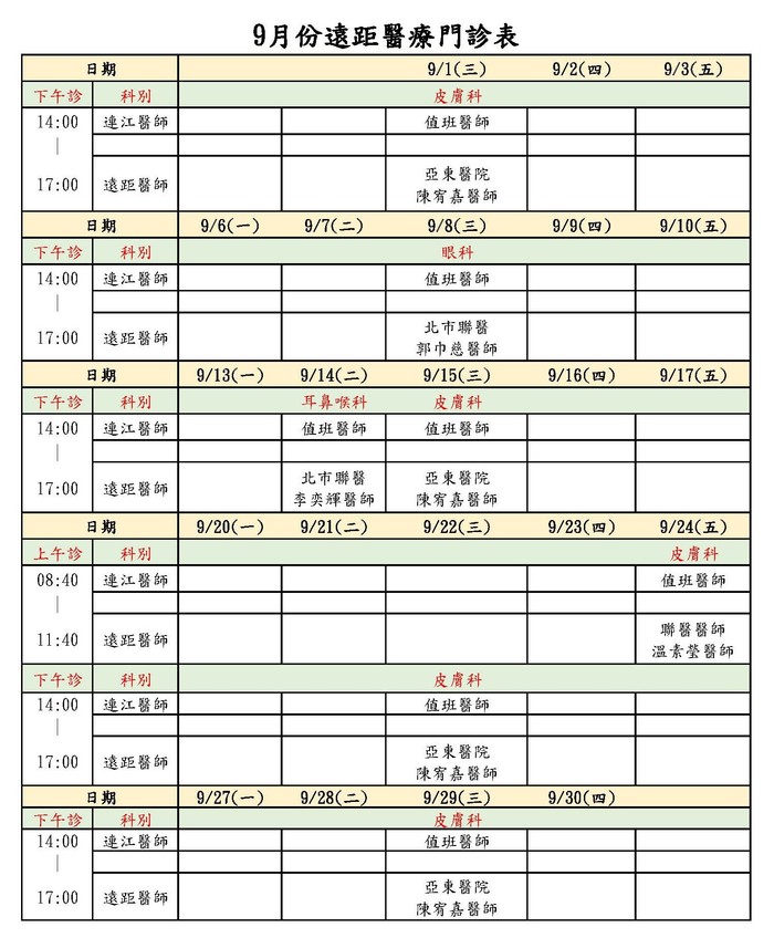 110年9月份遠距醫療門診表 --閱讀人次 : 669