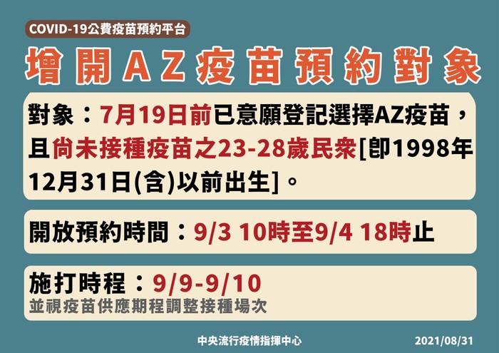 預約平台增開AZ疫苗預約對象