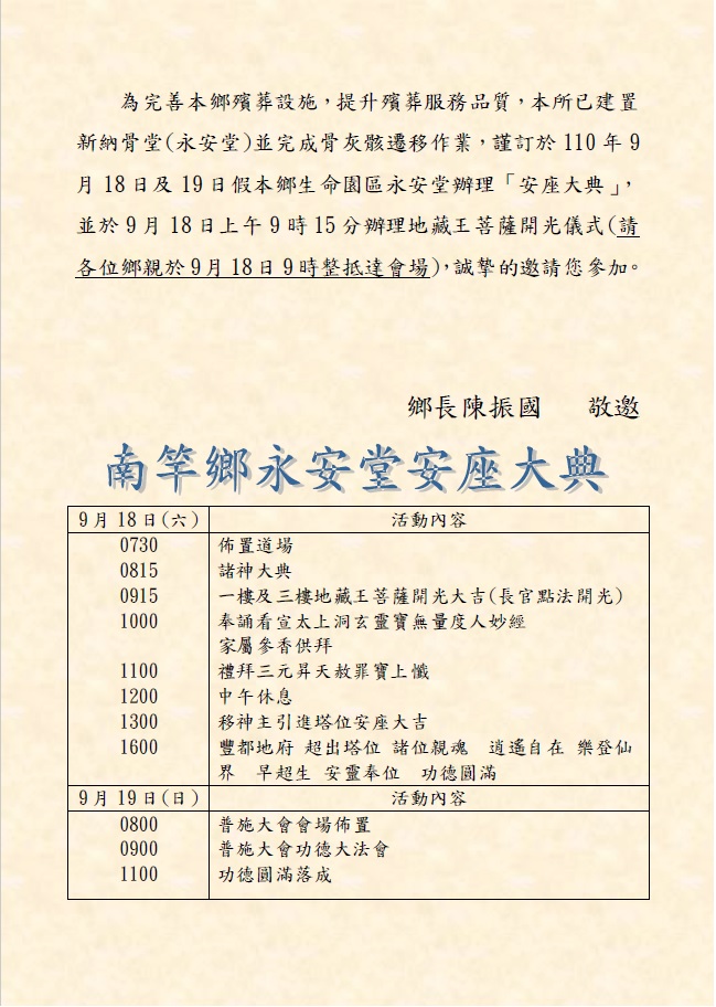 9/18南竿鄉生命園區永安堂安座大典