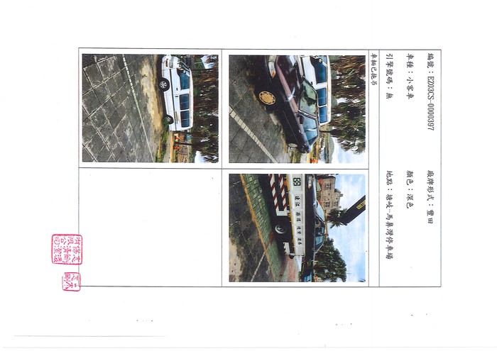一、查報編號:EZ03CS-0000397,查報日期:110年7月16日,廠牌:豐田,顏色:深色,車種:小客車,牌照號碼:無,查報地點:塘岐-馬鼻灣停車場。