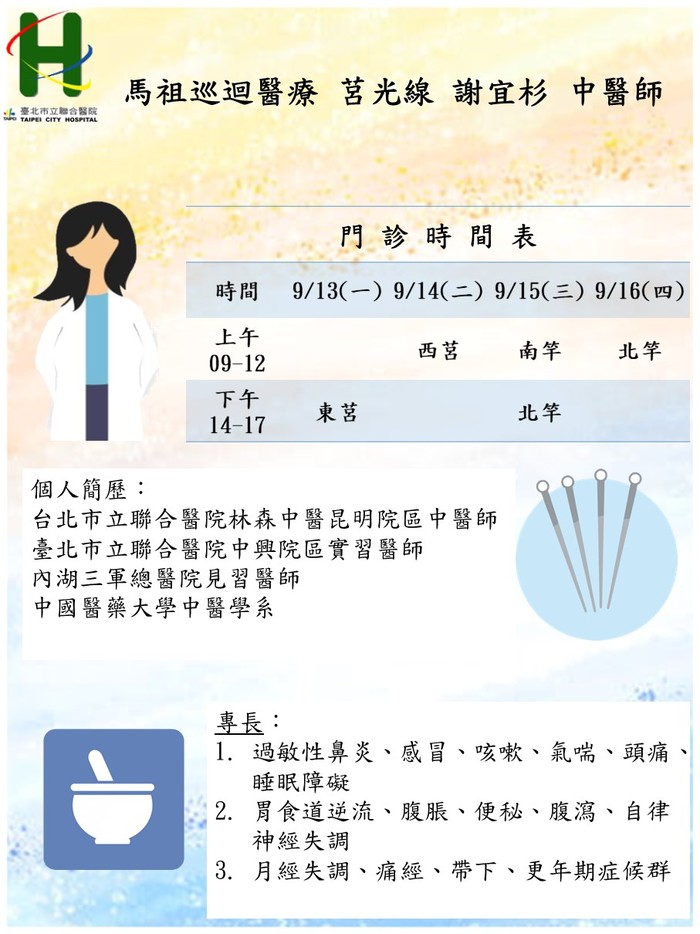 p.s. 這週氣候不穩定,前往諮詢時請先查看醫師所服務地區,可能與預定行程有所出入喔,不便之處敬請見諒。