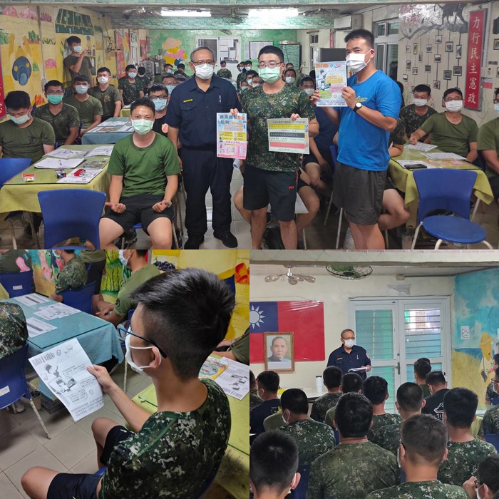 所長賴志偉針對東莒機歩連士官兵加強宣導網路購物反詐騙小技巧.並對近年常見網路假交友假投資詐騙手法。解除分期付款及假網拍詐騙等詐騙手法,其中針對歹徒常扮演網友、投資顧問誘騙被害人,假交友結合假投資為近年常見詐騙手法加強宣導「歹徒大多透過社群網站架設假網站詐騙被害人.至LINE.臉書等軟體持續詐騙被害購物詐騙等手法,並提供「165全民防騙」網頁.可供士官兵事先過濾和預防受騙。