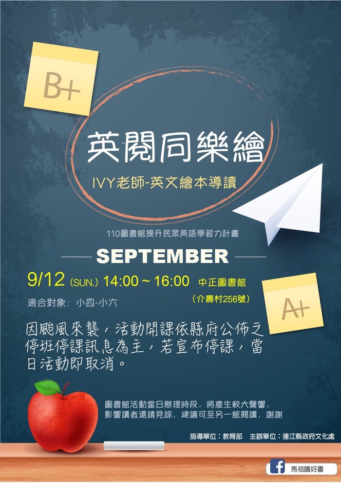 9/12英閱同樂繪開課依縣府公告為主
