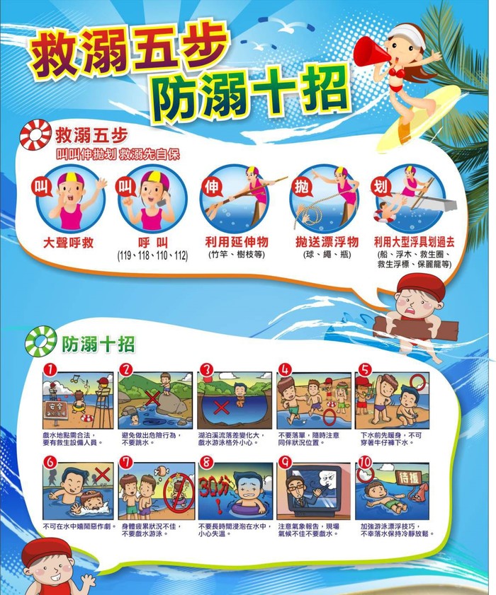 10、加強游泳漂浮技巧,不幸落水保持冷靜放鬆。