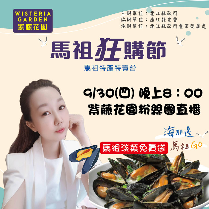 馬祖特產特賣會 #直播預告 --閱讀人次 : 669 https://www.facebook.com/Wisteriagarden/