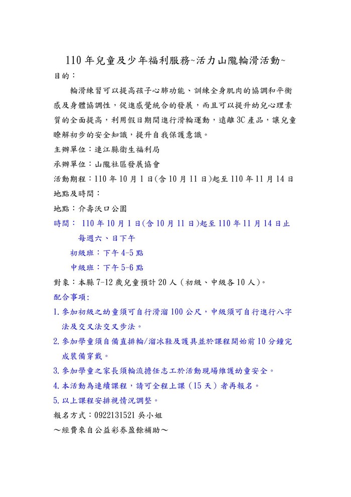 連江縣南竿鄉山隴社區發展協會 聯絡電話 0836-22104