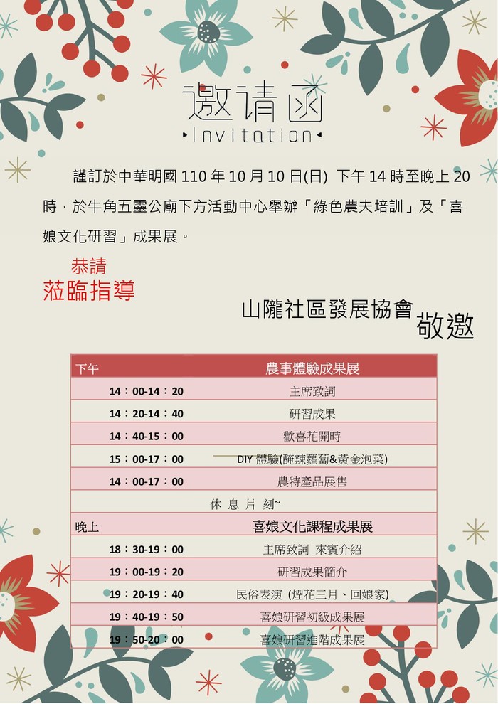 敬邀參加本會辦理農村再生之牛角社協成果發展活動