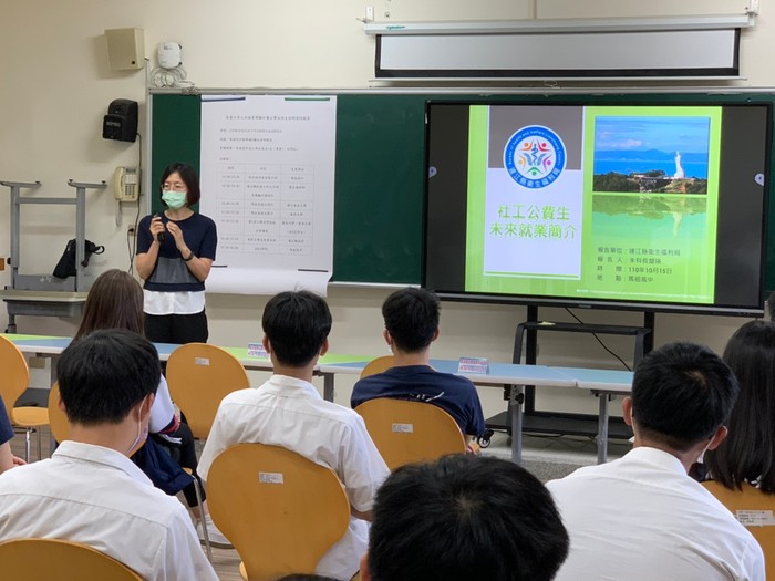 衞生福利部補助社工公費生3名! --閱讀人次 : 959 111學年公費社工正式招生,衞生福利部已於110年10月15日會同連江縣衛生福利局、臺北大學及東吳大學在馬祖高中辦理招生說明會;鼓勵應屆畢業生勇於投入社工行列。