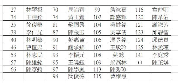 五、以下人員無法聯絡到,請於申請日期前填寫表單及交相關資料,有任何問題請先電聯公會,謝謝