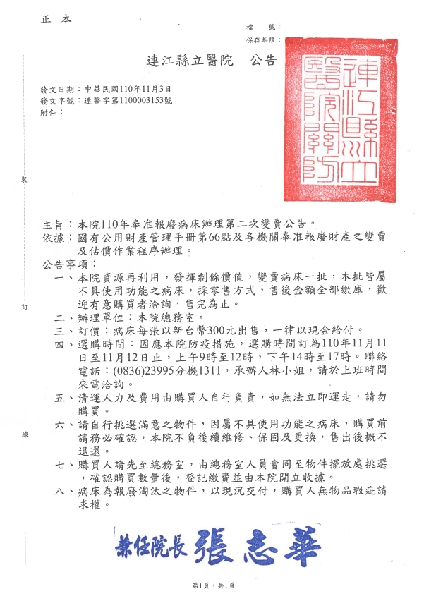 連江縣立醫院 電話:(0836)23991 傳真:(0836)22155 地址:20941連江縣南竿鄉復興村217號 E-Mail:service@matsuh.gov.tw 網址:https://www.matsuh.gov.tw/