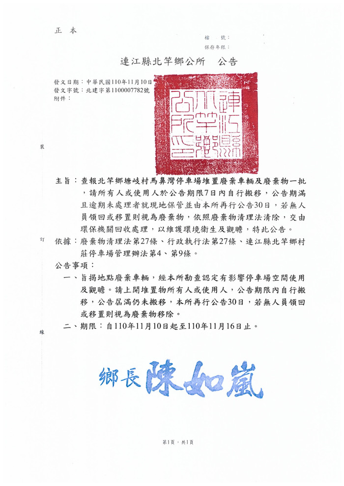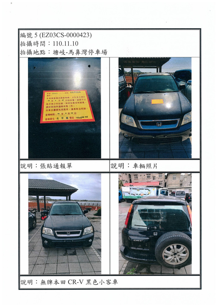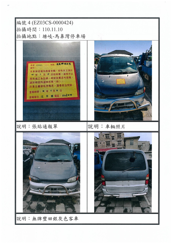 查報馬鼻灣停車場無牌車輛、廢棄物一批