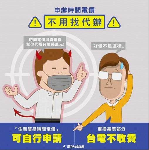 近日接獲民眾反映,近來南竿地區出現代辦申請改時間電價,以節省電費代辦之名義向用戶招攬代辦申請,收取高額費用。「住商型簡易時間電價」可以自行申請,更換電表部分不收費,不必透過代辦,可到台電各服務據點,或透過客服專線1911、台電APP申請。