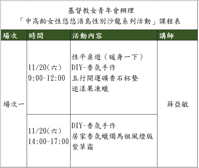 YWCA辦理生活小物香氛手作活動中高齡女性悠悠浯島性別沙龍系列生活小物香氛手作活動