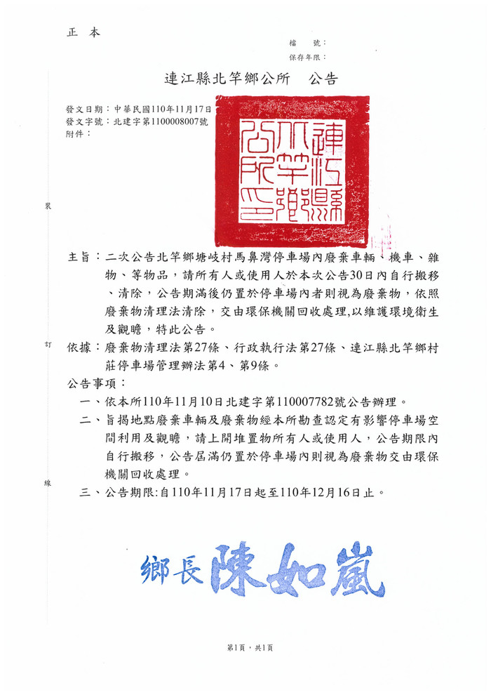 馬鼻灣停車場無牌車輛、廢棄物二次公告
