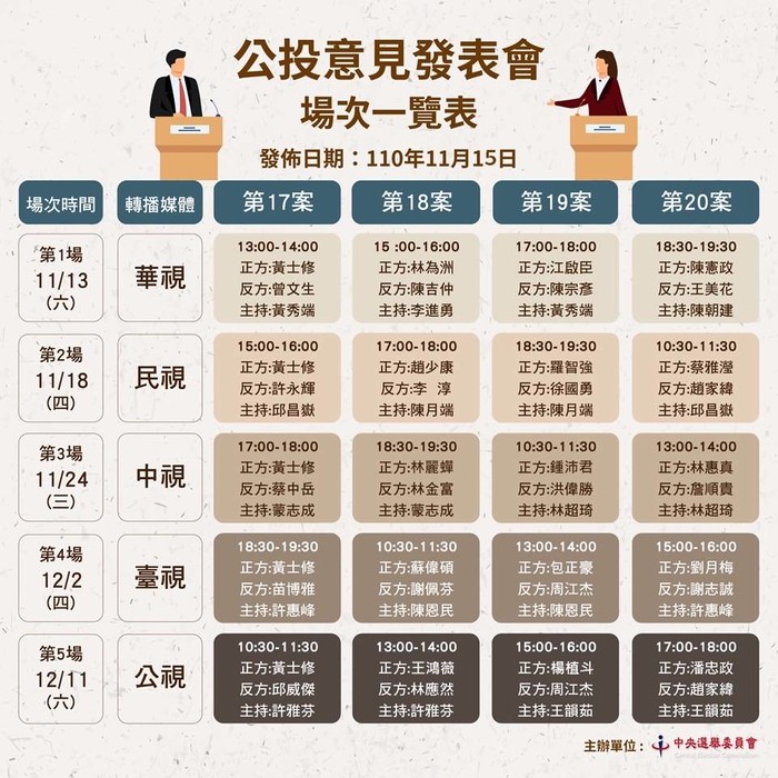 第四場公投意見發表會12月2日在臺視