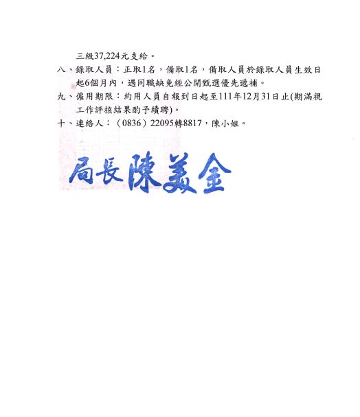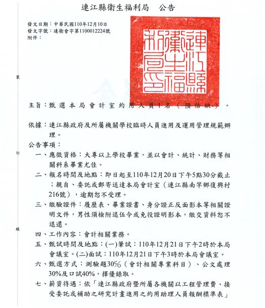 衛福局徵選會計室約用人員1名
