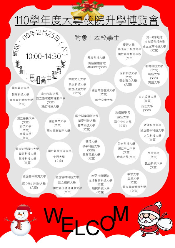 國立馬祖高中110學年度大專校院升學博覽會 --閱讀人次 : 809 國立馬祖高中110學年度大專校院升學博覽會