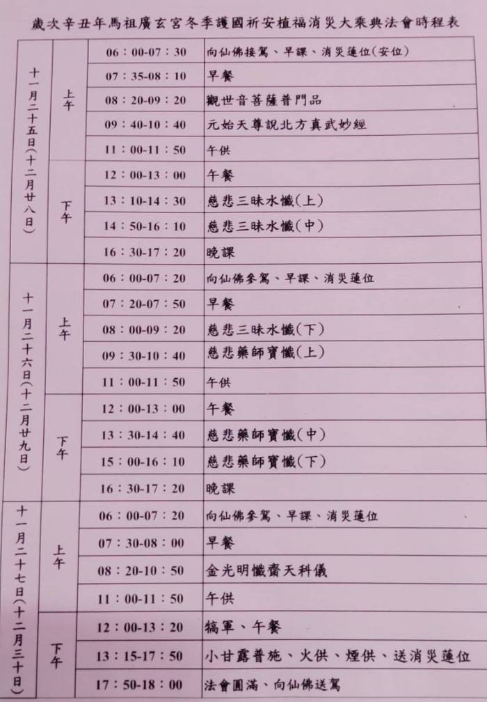廣玄宮冬季護國祈安植福消災大乘典法會 --閱讀人次 : 659 馬祖廣玄宮冬季護國祈安植福消災大乘典法會通啟