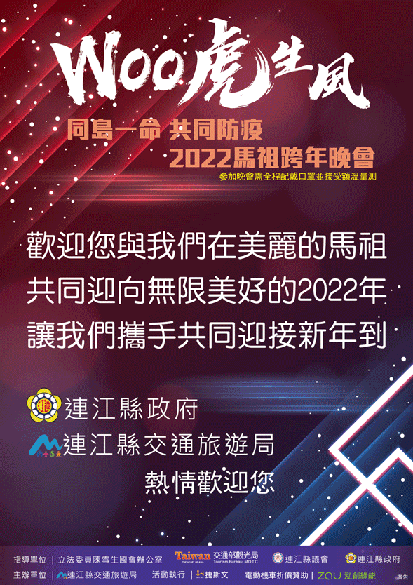 馬祖跨年晚會活動及交通接駁資訊 --閱讀人次 : 1728 馬祖日報【記者曹重偉報導】年度盛事2021至2022年跨年晚會將於31日間在介壽澳口公園登場。晚會由主持天后斯容及金曲歌王王中平領銜多名歌手熱情開唱。此外今年的摸彩品獎項十分豐富,除了有最新型的重型電動機車1台、125cc汽油機車2台、最新款的iPhone13 128g手機、iPad 64g 平板電腦,飛利浦全自動咖啡機,任天堂遊戲機之外,還有各式3C家電、超商商品卡等共計百餘款獎項。