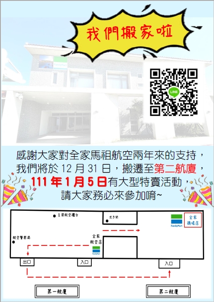 全家馬祖航空店即日起開始搬新家~