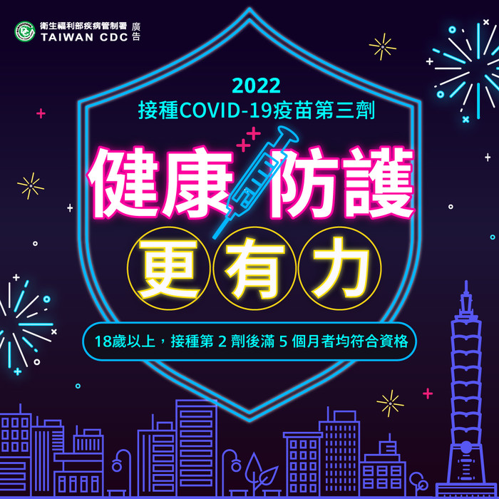 ▲接種追加劑,健康防護更有力! --閱讀人次 : 1065 新冠變種病毒Omicron來勢洶洶,指揮中心呼籲,接種基礎兩劑疫苗後,疫苗保護力會隨著時間下降,追加接種第三劑可再大幅增加中和抗體效價,提升保護力,有效對抗變種病毒,降低突破性感染的風險。