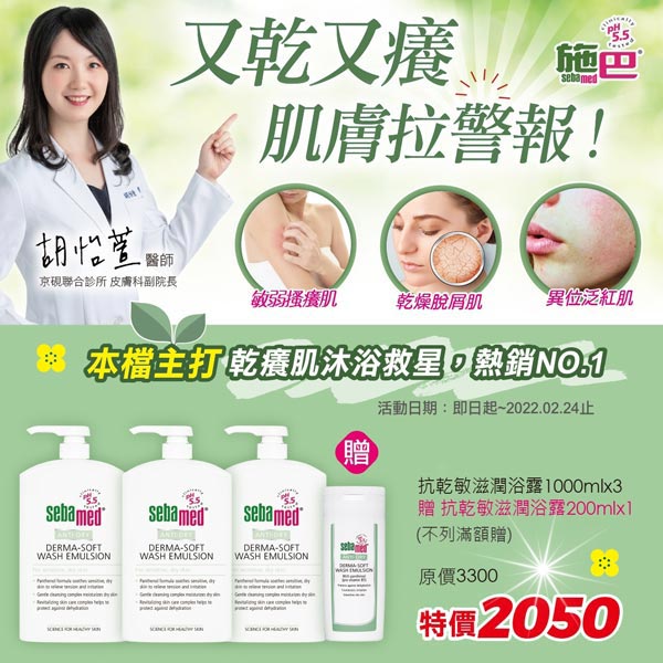 1. 購買抗乾敏指定組,再贈抗乾敏滋潤浴露200ml (僅此一檔) ,不列滿額贈