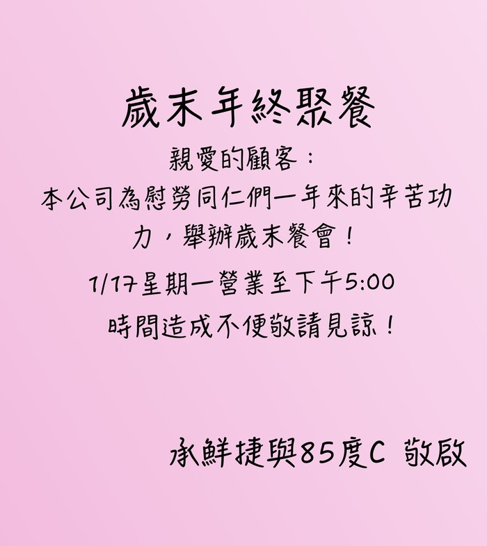 歳末年終,承鮮捷購物商場&85度C因慰勞同仁年終餐會