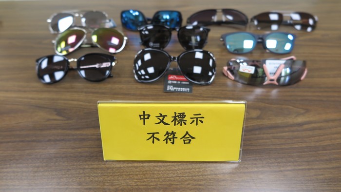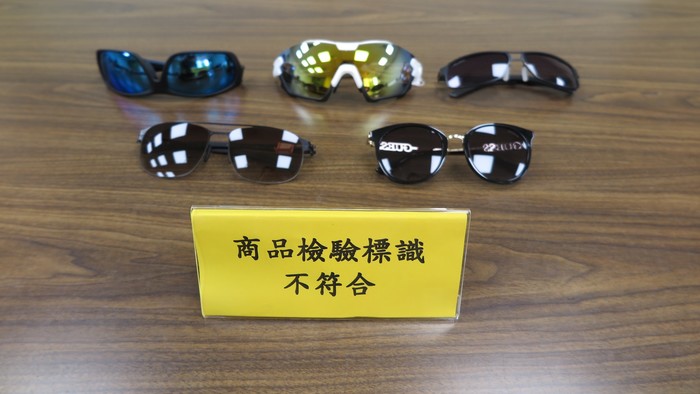 為瞭解市售「太陽眼鏡」品質,行政院消費者保護處與經濟部標準檢驗局合作,於110年購買20件「太陽眼鏡」,依據國家標準CNS 15067「眼睛及臉部防護-太陽眼鏡及相關眼鏡配戴物--第1部:一般使用之太陽眼鏡」進行「品質項目」檢測,與依據「商品檢驗法」及前述標準查核「商品檢驗標識」與「中文標示」。結果「品質項目」5件(項次7、8、15、16、20)不符合,「中文標示」10件(項次2、3、9、10、11、12、16、18、19及20)不符合,「商品檢驗標識」6件(項次3、4、7、9、10、19)不符合。