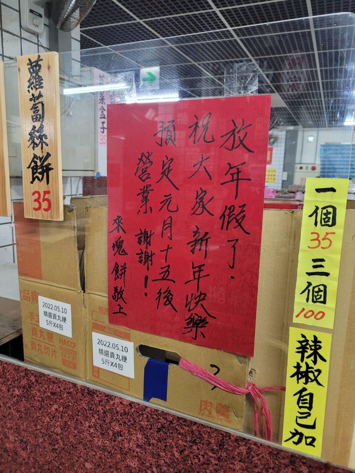 市場來塊餅韭菜盒子過年休息