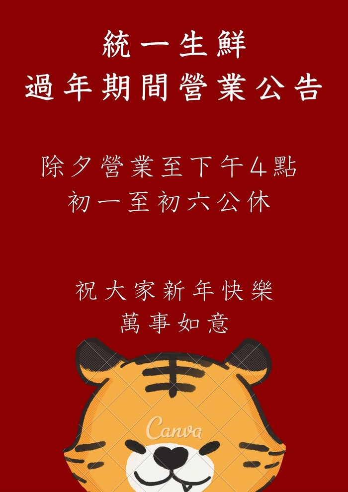 統一生鮮過年營業時間公告