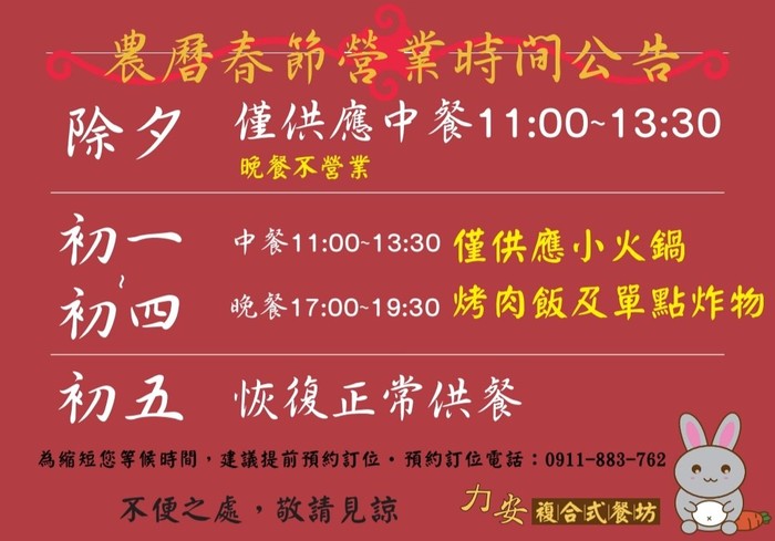 力安複合式餐坊 營業時間:11:00~20:30 地址:馬祖南竿鄉馬祖村11號 電話:0836-25109、23109 手機:0911-883-762 Facebook:www.facebook.com/LiAn19960509 營業時間:11:00~20:30